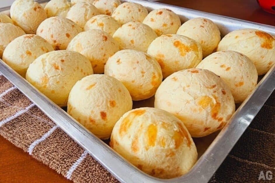 Assim que sair do forno, o cheiro vai tomar conta da casa. O segredo pra ele não murchar é simples: nunca abra o forno antes dos 25 minutos e, depois que estiver assado, deixe o pão de queijo descansar no forno desligado por uns 5 minutinhos com a porta entreaberta. Isso evita o choque térmico e mantém o formato lindo e redondinho!