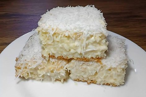 O bolo gelado de coco simples fica bem molhadinho pela adição da calda, que combina